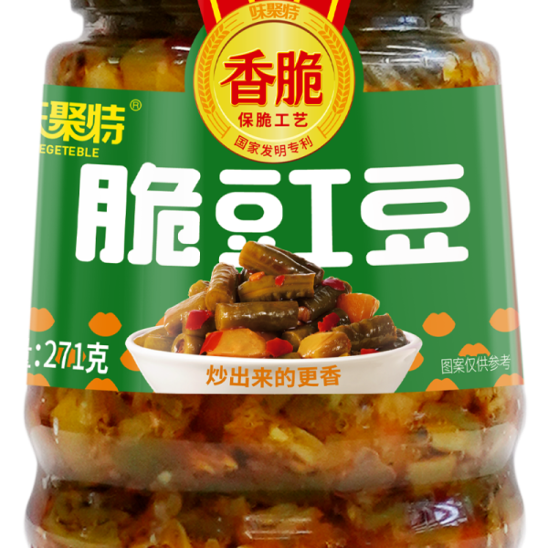 精选新鲜豇豆,采用传统四川泡菜工艺腌制。大瓶装设计,适合家庭使用。口感爽脆,酸辣可口,富含膳食纤维。规格:271g×12瓶/箱,保质期15个月。