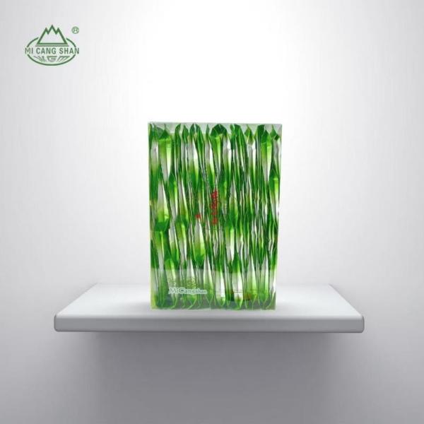 米仓山茶 (毛峰)以米仓山茶园茶鲜叶为原料,采用现代工艺精工制作。其品质特点:茶条紧纽弯曲,色泽翠绿显毫,栗香持久,汤色嫩绿明亮,滋味鲜爽甘醇,叶底绿亮匀整。冲泡后芽叶紧卷似玉龙卧潭,历历可数,耐冲泡,乃高品质绿茶之上品。